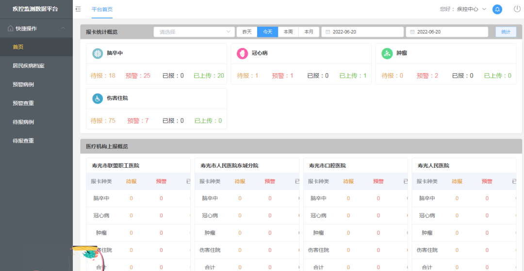 2022年6月(yue)20日(ri),由壽光(guang)市疾控中心牽(qian)頭研發的全(quan)市醫療機構信息管理(li)系(xi)統(HIS)與慢(man)性(xing)病監測信息系(xi)統對接平臺正(zheng)式啟用(yong),標(biao)志著我市在全(quan)省率(lv)先(xian)實現了慢(man)性(xing)病監測報(bao)卡信息化。