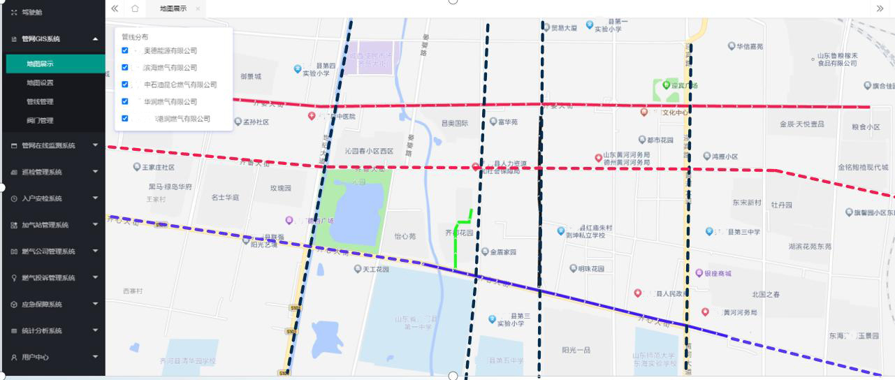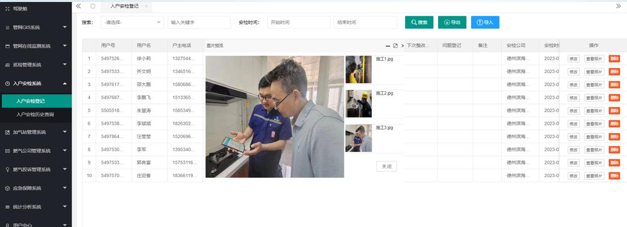 聯動管(guan)(guan)理,實(shi)現(xian)燃氣公(gong)司庫、從業人員庫、GIS庫、燃氣安檢用(yong)戶庫、應急處置(zhi)庫等數字化(hua)管(guan)(guan)理,實(shi)現(xian)政府監管(guan)(guan)部(bu)門(men)對(dui)燃氣企業信息的全盤(pan)掌握。