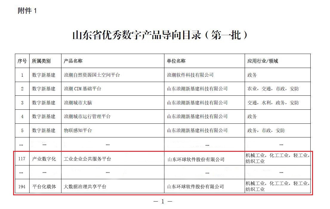 近日,山東省工業(ye)和信息化廳公(gong)布(bu)了(le)《山東省優秀數(shu)字產(chan)品(方案)導向(xiang)目錄(第(di)一批)》名單。山東環球軟件股(gu)份有限公(gong)司申報的“工業(ye)企業(ye)公(gong)共服務平臺”、“大數(shu)據治理共享平臺”兩項成(cheng)果,成(cheng)功入選。
