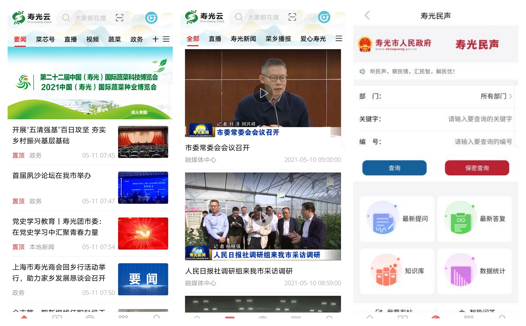 在壽(shou)光(guang)(guang)(guang)市融(rong)(rong)媒(mei)(mei)體(ti)中心(xin)(xin)(xin)(xin)(xin)(xin),孟(meng)冬察(cha)看了(le)融(rong)(rong)媒(mei)(mei)演播大廳、融(rong)(rong)媒(mei)(mei)體(ti)宣(xuan)傳指(zhi)揮調度中心(xin)(xin)(xin)(xin)(xin)(xin)、“以菜為媒(mei)(mei)”融(rong)(rong)媒(mei)(mei)體(ti)服(fu)務(wu)(wu)平臺、應急廣(guang)播系統播控(kong)中心(xin)(xin)(xin)(xin)(xin)(xin)等,深(shen)入(ru)了(le)解(jie)壽(shou)光(guang)(guang)(guang)市融(rong)(rong)媒(mei)(mei)體(ti)中心(xin)(xin)(xin)(xin)(xin)(xin)建設(she)和運行(xing)(xing)情況(kuang),對“壽(shou)光(guang)(guang)(guang)云”APP的發(fa)展給予(yu)高度肯(ken)定(ding)。為打造智慧廣(guang)電,壽(shou)光(guang)(guang)(guang)市開發(fa)了(le)“壽(shou)光(guang)(guang)(guang)云”APP,集資訊發(fa)布、行(xing)(xing)政審批、文明實踐、社會治理(li)、便(bian)民(min)(min)服(fu)務(wu)(wu)于一端。客戶端與(yu)新(xin)時代文明實踐中心(xin)(xin)(xin)(xin)(xin)(xin)、社會治理(li)服(fu)務(wu)(wu)中心(xin)(xin)(xin)(xin)(xin)(xin)、大數(shu)據中心(xin)(xin)(xin)(xin)(xin)(xin)等部門單位數(shu)據共享,接入(ru)政務(wu)(wu)服(fu)務(wu)(wu)項目23個(ge),公示行(xing)(xing)政審批項目流程清(qing)單73個(ge),實現了(le)便(bian)民(min)(min)服(fu)務(wu)(wu)掌上辦理(li)。整(zheng)合報紙(zhi)、電視、廣(guang)播、16個(ge)新(xin)媒(mei)(mei)體(ti)號(hao),以及各鎮街、部門、企業等148個(ge)新(xin)媒(mei)(mei)體(ti)號(hao)入(ru)駐(zhu)“壽(shou)光(guang)(guang)(guang)云·菜芯號(hao)”,實現了(le)政務(wu)(wu)信息統一發(fa)聲。目前,“壽(shou)光(guang)(guang)(guang)云”APP累計下(xia)載量突(tu)破161萬,注冊(ce)用戶超過44萬人。
